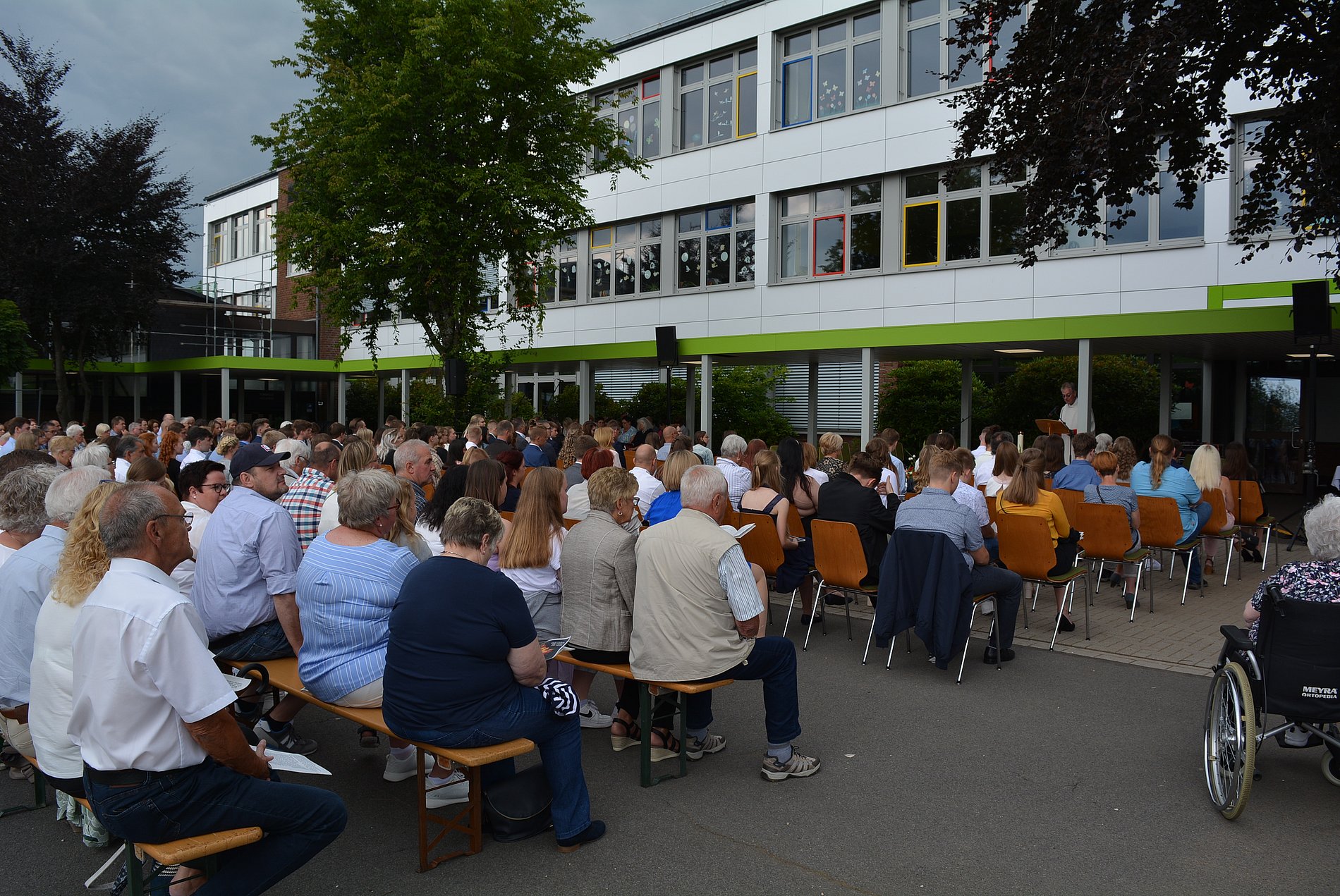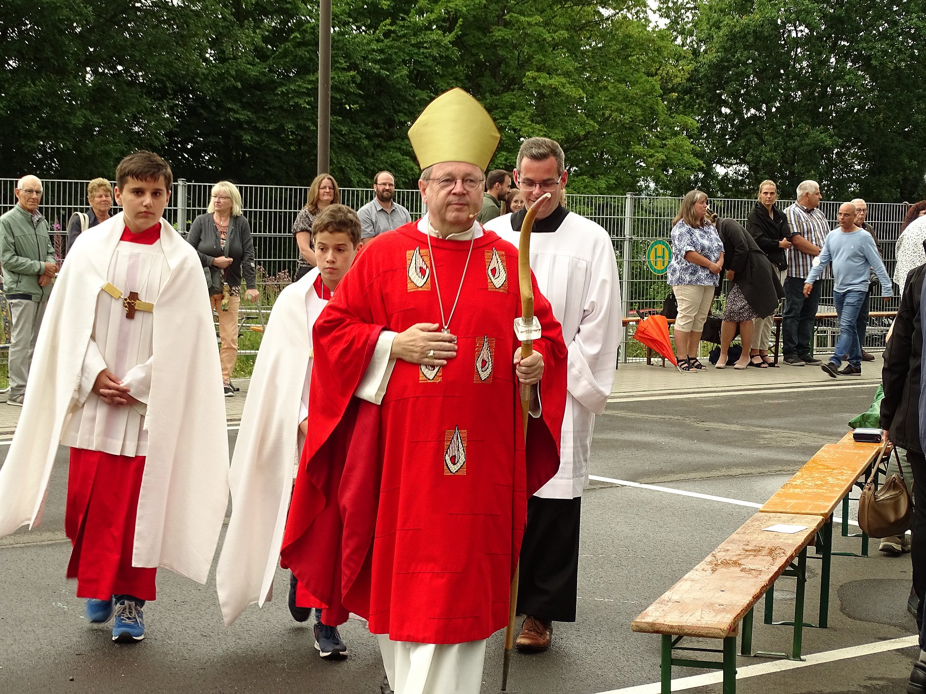 Höhn/Pfarreigebiet. Die Firmung ist ein Sakrament der katholischen Kirche. Durch Salben und Auflegen der Hand durch den Bischof soll dem Firmling eine Festigung im Glauben zuteilwerden werden. Im Rahmen der Visitation in der Pfarrei Sankt Franziskus im Hohen Westerwald wurde dieses Sakrament 46 jungen Menschen gespendet. Für den Gottesdienst wurde das weiträumige Gelände des Schulhofes der Sankt-Barbara-Grundschule in Höhn gewählt um möglichst vielen Besuchern die Teilnahme zu ermöglichen. Mehr als 200 Gläubige kamen. Neben den Firmanwärterinnen und Firmanwärtern wollten Geschwister, Eltern, Großeltern und Familienangehörige mit dabei sein, wenn Bischof Bätzing das Sakrament spenden würde. Zuvor fand eine Begegnung mit den zu Firmenden und dem Bischof statt, um diesen kennenzulernen und Glaubensfragen zu besprechen. Vorangegangen war ein Firmkurs, in dem Gemeindereferent Bernhard Hamacher mit Bausteinen zu verschiedenen Bereichen des Glaubens den zu Firmenden die Thematik nähergebracht hatte. Dadurch fand eine inhaltliche Auseinandersetzung mit diesem Sakrament der Firmung für jeden Einzelnen statt.