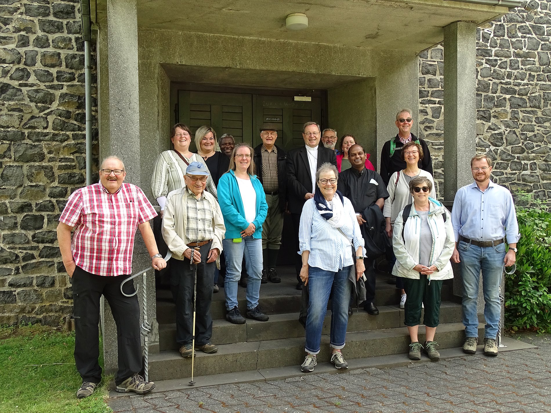 Bei jeder Visitation ist dem Bischof wichtig, mit den Gremien und den Hauptamtlichen der Pfarrei ins Gespräch zu kommen. Im Vorbereitungskreis wurde die Idee geboren, das Gespräch während einer Wanderung mit dem Bischof zu führen. Diese fand im Anschluss an die Morgenandacht bei Sonnenschein und angenehmen Temperaturen statt und führte durch Feld und Flur von Ailertchen zur Kapelle auf dem Ahlsberg nach Höhn.