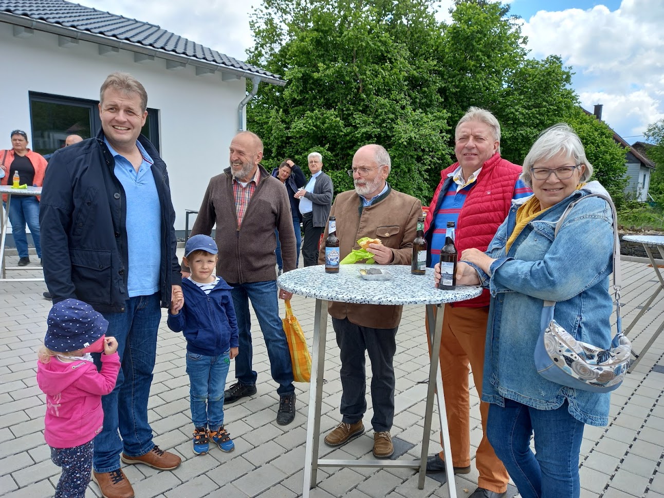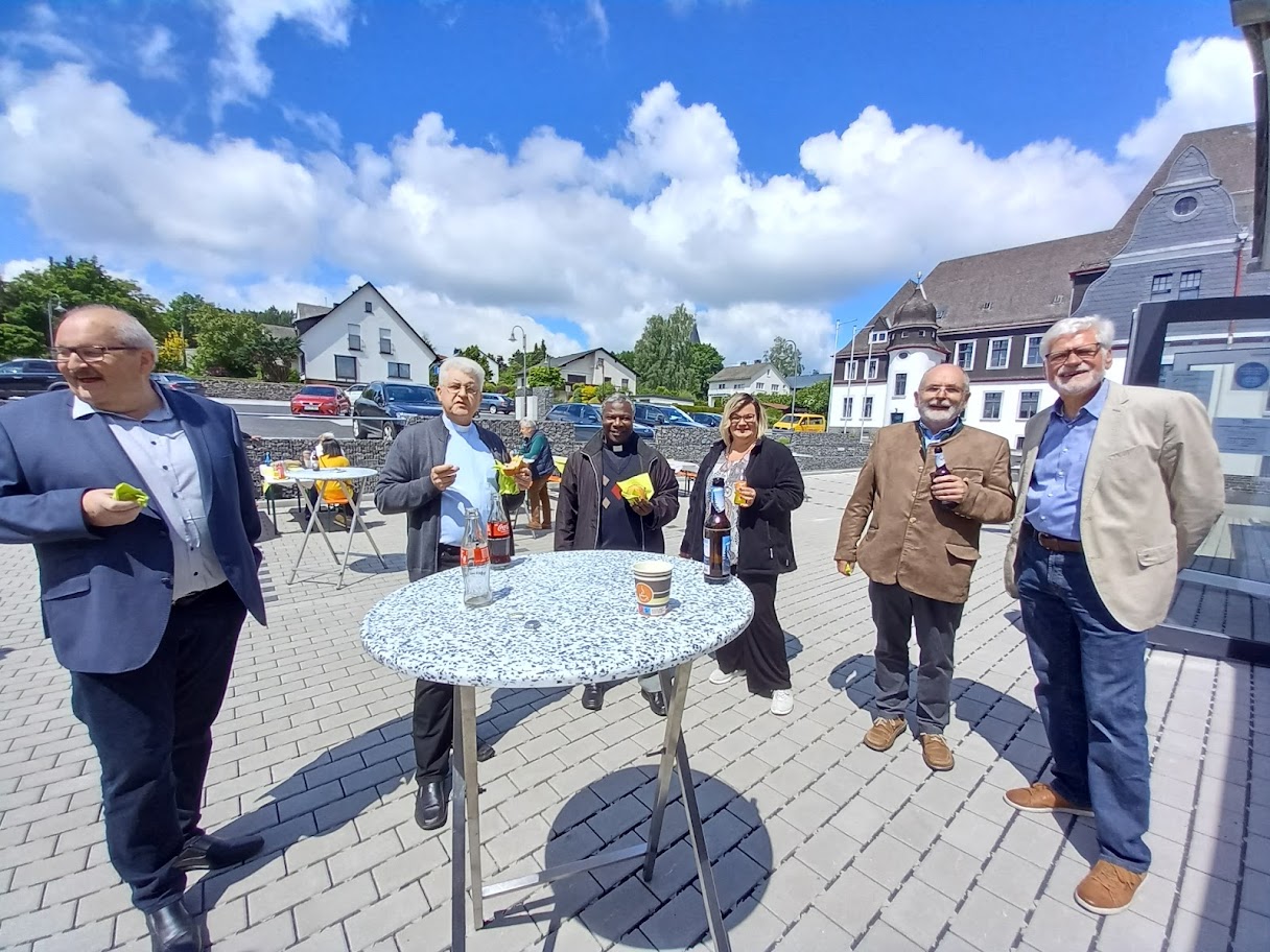 Pfarrer Achim W. Sahl ging zur Begrüßung auf die Entstehung des Zentralen Pfarrbüros ein, das ein jahrelanges Provisorium im ehemaligen Pfarrhaus in Seck ablöste. Das Bauwerk entstand an jener Stelle, wo früher das Pfarrhaus der Kirchengemeinde Sankt Hubertus in Rennerod stand. Es benötigte eine dreieinhalbjährige Vorlaufszeit, bevor im Juli 2020 mit den Bauarbeiten begonnen werden konnte. Das Richtfest wurde am 18. September 2020 gefeiert. Im Juli 2021 zogen die Mitarbeiterinnen und Mitarbeiter in das neue Verwaltungsgebäude ein. Pfarrer Sahl, gleichzeig auch Vorsitzender des Verwaltungsrates der Pfarrei Sankt Franziskus dankte allen, die zum Bau und der Fertigstellung des Verwaltungsgebäudes beigetragen hatten. Namentlich dankte Sahl auch dem stellvertretenden Vorsitzenden des Verwaltungsrates, Helmut Scherer und der Vorsitzenden des Pfarrgemeinderates, Petra Bandlow. Ebenso der Bau- und Finanzabteilung des Bistums Limburg. Unter erschwerten Bedingungen, bedingt durch die Coronapandemie, mussten die Verwaltungsleiterin Marina Weiler und die Mitarbeitenden starten. Corona, so der Pfarrer, hätte auch den Zeitpunkt der Einsegnung und des Tages der offenen Tür bestimmt. „Heute aber können wir miteinander feiern“, sagte Sahl. Zur Einsegnung des Gebäudes sprach er ein Gebet, wo er um Gottes Segen für alle bat, die hierin arbeiten oder sich begegnen. Die sei der erste Schritt zur Güte, Hilfsbereitschaft und Menschlichkeit. Es schlossen sich Fürbitten an. Nach dem eigentlichen Segen sangen die Besucher die ersten beiden Strophen von „Großer Gott wir loben dich“.