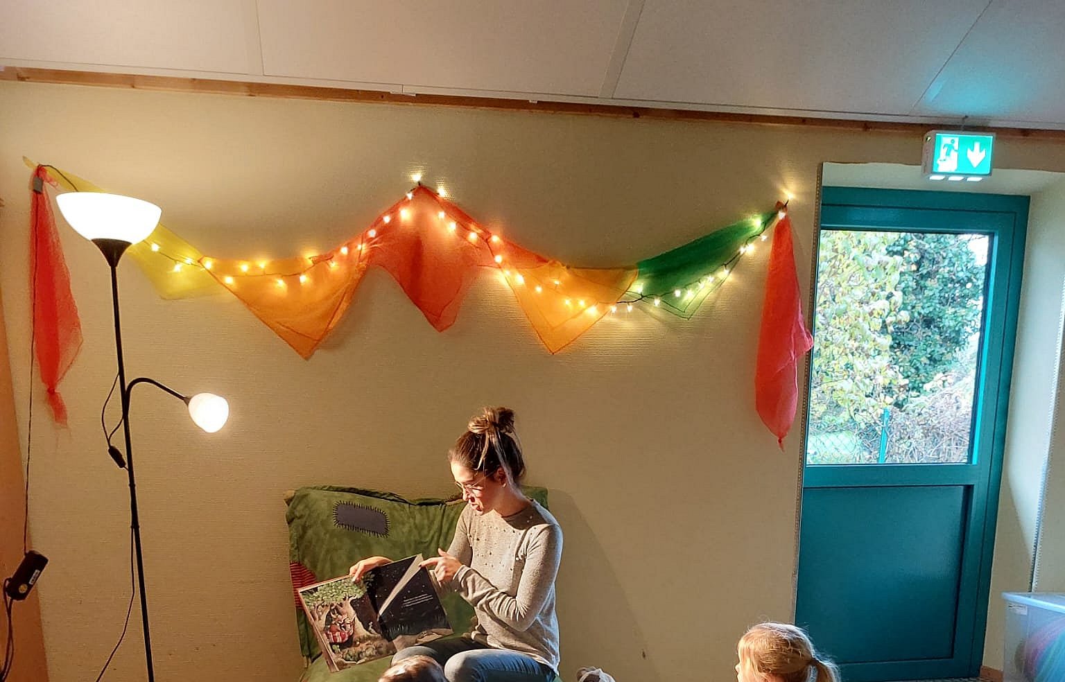 Unsere Turnhalle verwandelte sich dazu in eine gemütliche Leseoase, die mit Lichterketten, Matratzen, Decken und Kissen hergerichtet war.