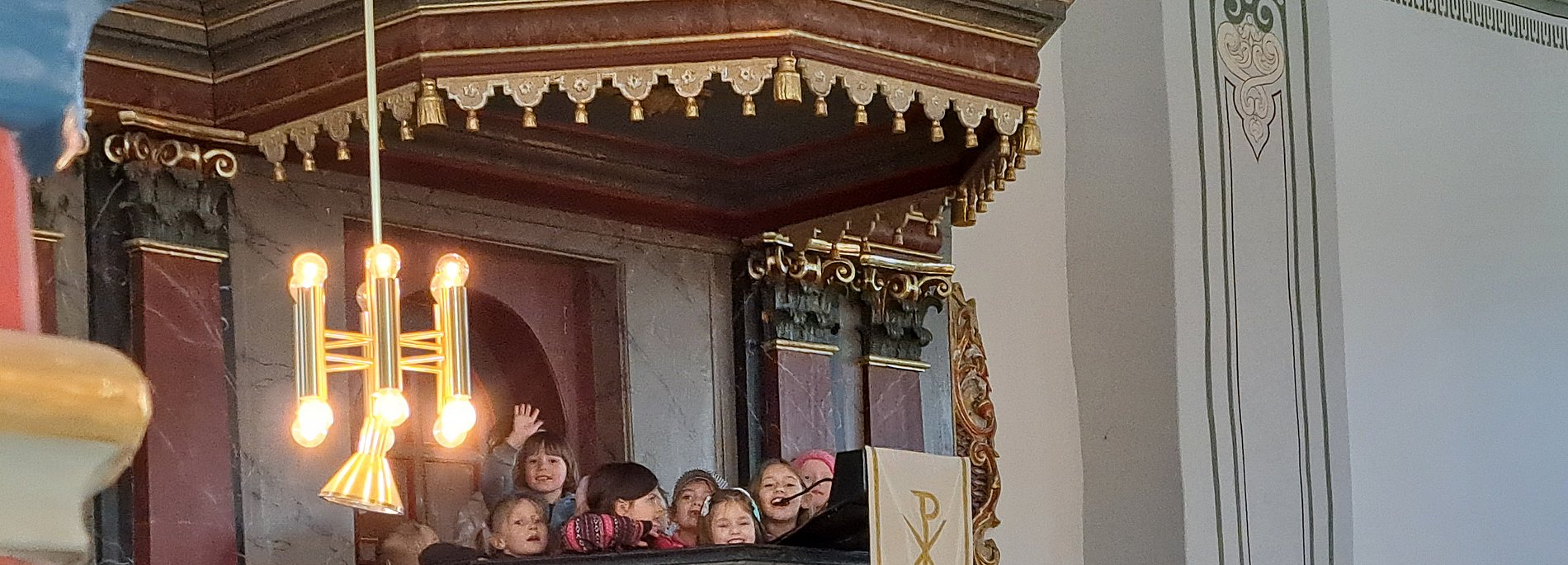 Die Aufregung am Morgen war groß, als die Fahrt mit den Mamataxis Richtung Neunkirchen startete. Pünktlich um 10.00 Uhr, zum Glockenschlag im Kirchturm, erreichten wir das Pfarrgelände und wurden dort bereits von Pfarrerin Anja Jacobi erwartet. 22 Vorschulkinder wollten die Kirche und das Außengelände anschauen und kennenlernen. Frau Jacobi versammelte die Kinder am Taufbecken und zusammen wurde das Lied „Alles super“ gesungen. Danach wurden die Kinder in zwei Gruppen aufgeteilt und erhielten einen Laufzettel mit Fragen zum Erkunden der Kirche. Auf unterschiedlichen Wegen durften die Kinder dann das Außengelände mit dem wunderschön angelegten Labyrinth, die Empore mit der Orgel, den Alter sowie die Kanzel erkunden. Frau Jacobi setzte sich beispielsweise mit den Kindern an die Orgel und gemeinsam wurden dieser verschiedene Töne durch das Treten der Pedale und das Ziehen der Register entlockt. Dabei entdeckten sie auch den Zimbelstern ganz oben an der großen Orgel. Frau Jacobi zeigte den Kindern dann ihre geheimen Verstecke, in denen sie sich versteckt, wenn sie mit den Messdienern in der Kirche spielt. Das war natürlich für die „schlauen Füchse“ sehr interessant und alle wollten sich ebenfalls in der Orgel verstecken. Am Altar durften die Kinder aus dem Abendmahlkelch trinken und entdeckten die Bibel. Am Taufstein nahmen sich alle Kinder etwas Wasser aus dem Becken und machten ein Kreuzzeichen auf ihrer Stirn. Eine weitere Aufgabe war das Zählen der Bänke in der Kirche, was den Vorschulkindern selbstverständlich problemlos gelang. 27 Bankreihen wurden gezählt. Frau Jacobi hatte dann in der Kirche für jedes Kind ein Armband mit einem Gottesspruch versteckt. Blitzschnell wurden diese natürlich entdeckt. Zum Abschluss bot Frau Jacobi an mit Kleingruppen auf den Glockenturm zu klettern. Auch hier wollten alle Kinder mitgehen. Über drei Stiegen kletterten die Kinder zusammen mit der Pfarrerin und einer Erzieherin hoch hinauf zu den Glocken. Zum Abschluss des aufregenden Vormittags sangen alle Kinder vor dem Gotteshaus noch das Lied „Gottes Segen“ und verabschiedeten sich von Frau Jacobi.